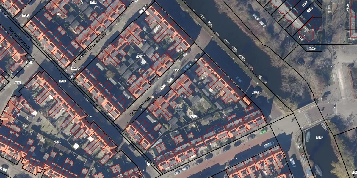 Het perceel waarop Cobdenstraat 3 staat heeft een oppervlakte van 2783 m². Dit is een zeer groot perceel. De perceeloppervlakte wordt geregistreerd door het Kadaster. Gedetailleerde informatie over de maten van dit perceel kunt u vinden in het rapport Kadastrale kaart met maatvoering van Cobdenstraat 3.