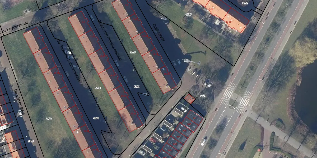 Het perceel waarop Colijnstraat 27 staat heeft een oppervlakte van 1696 m². Dit is een zeer groot perceel. De perceeloppervlakte wordt geregistreerd door het Kadaster. Gedetailleerde informatie over de maten van dit perceel kunt u vinden in het rapport Kadastrale kaart met maatvoering van Colijnstraat 27.