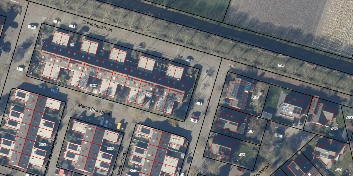 Het perceel waarop Columbusstraat 16 staat heeft een oppervlakte van 2914 m². Dit is een zeer groot perceel. De perceeloppervlakte wordt geregistreerd door het Kadaster. Gedetailleerde informatie over de maten van dit perceel kunt u vinden in het rapport Kadastrale kaart met maatvoering van Columbusstraat 16.