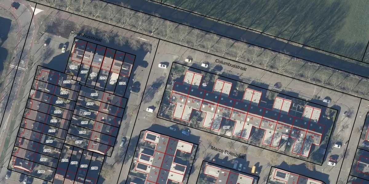 Het perceel waarop Columbusstraat 7 staat heeft een oppervlakte van 2914 m². Dit is een zeer groot perceel. De perceeloppervlakte wordt geregistreerd door het Kadaster. Gedetailleerde informatie over de maten van dit perceel kunt u vinden in het rapport Kadastrale kaart met maatvoering van Columbusstraat 7.