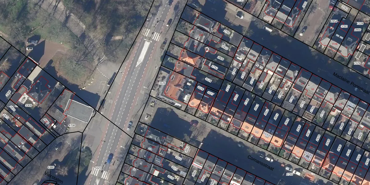 Het perceel waarop Comansstraat 1 staat heeft een oppervlakte van 379 m². Dit is een groot perceel. De perceeloppervlakte wordt geregistreerd door het Kadaster. Gedetailleerde informatie over de maten van dit perceel kunt u vinden in het rapport Kadastrale kaart met maatvoering van Comansstraat 1.