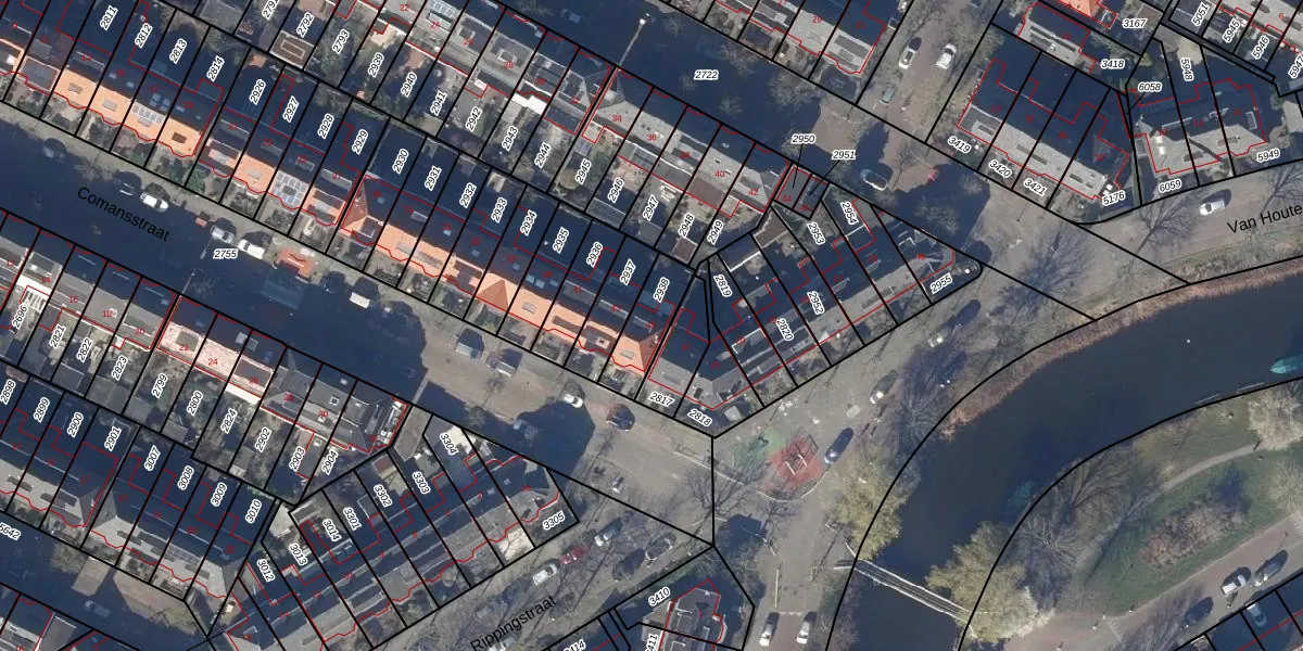 Gebruik de zoekbalk of klik op een perceel voor informatie over de adressen binnen dit perceel.
