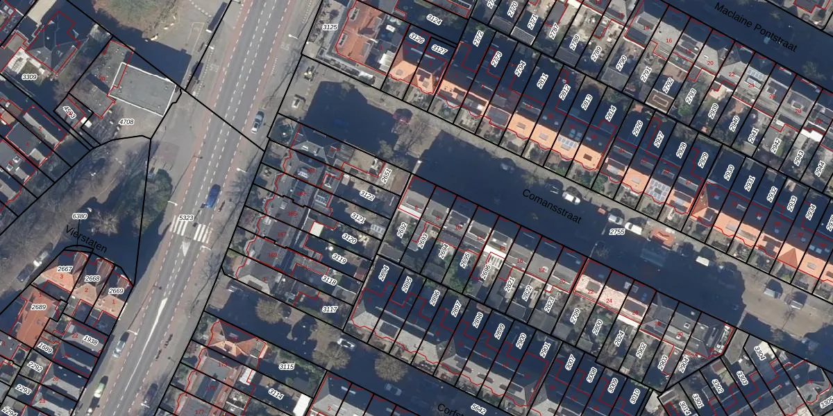 Gebruik de zoekbalk of klik op een perceel voor informatie over de adressen binnen dit perceel.