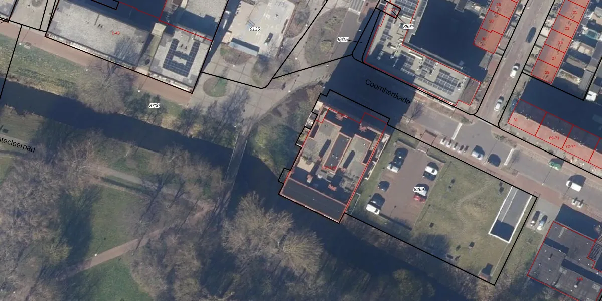 Het perceel waarop Coornhertkade 115 staat heeft een oppervlakte van 2701 m². Dit is een zeer groot perceel. De perceeloppervlakte wordt geregistreerd door het Kadaster. Gedetailleerde informatie over de maten van dit perceel kunt u vinden in het rapport Kadastrale kaart met maatvoering van Coornhertkade 115.