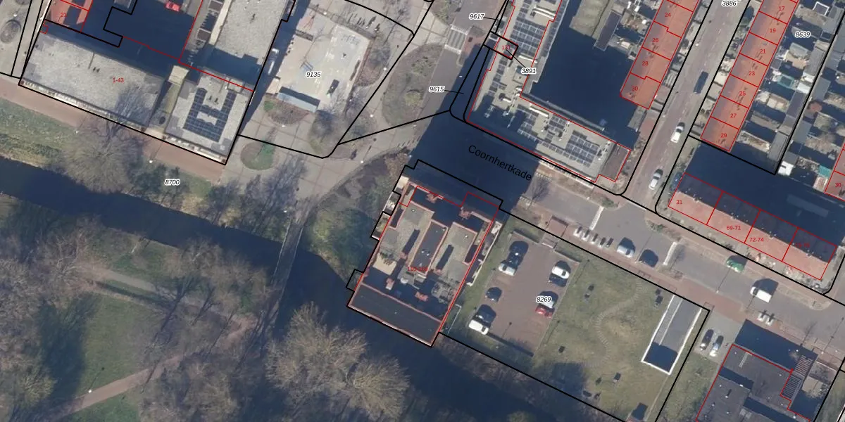 Het perceel waarop Coornhertkade 124 staat heeft een oppervlakte van 2701 m². Dit is een zeer groot perceel. De perceeloppervlakte wordt geregistreerd door het Kadaster. Gedetailleerde informatie over de maten van dit perceel kunt u vinden in het rapport Kadastrale kaart met maatvoering van Coornhertkade 124.