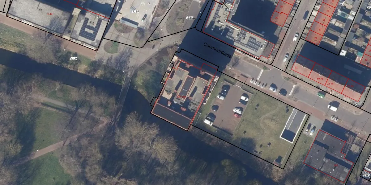 Het perceel waarop Coornhertkade 141 staat heeft een oppervlakte van 2701 m². Dit is een zeer groot perceel. De perceeloppervlakte wordt geregistreerd door het Kadaster. Gedetailleerde informatie over de maten van dit perceel kunt u vinden in het rapport Kadastrale kaart met maatvoering van Coornhertkade 141.