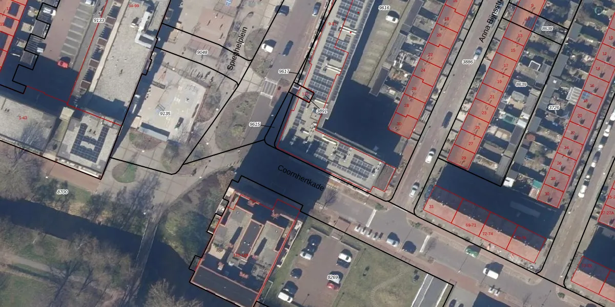 Het perceel waarop Coornhertkade 63 staat heeft een oppervlakte van 3893 m². Dit is een zeer groot perceel. De perceeloppervlakte wordt geregistreerd door het Kadaster. Gedetailleerde informatie over de maten van dit perceel kunt u vinden in het rapport Kadastrale kaart met maatvoering van Coornhertkade 63.