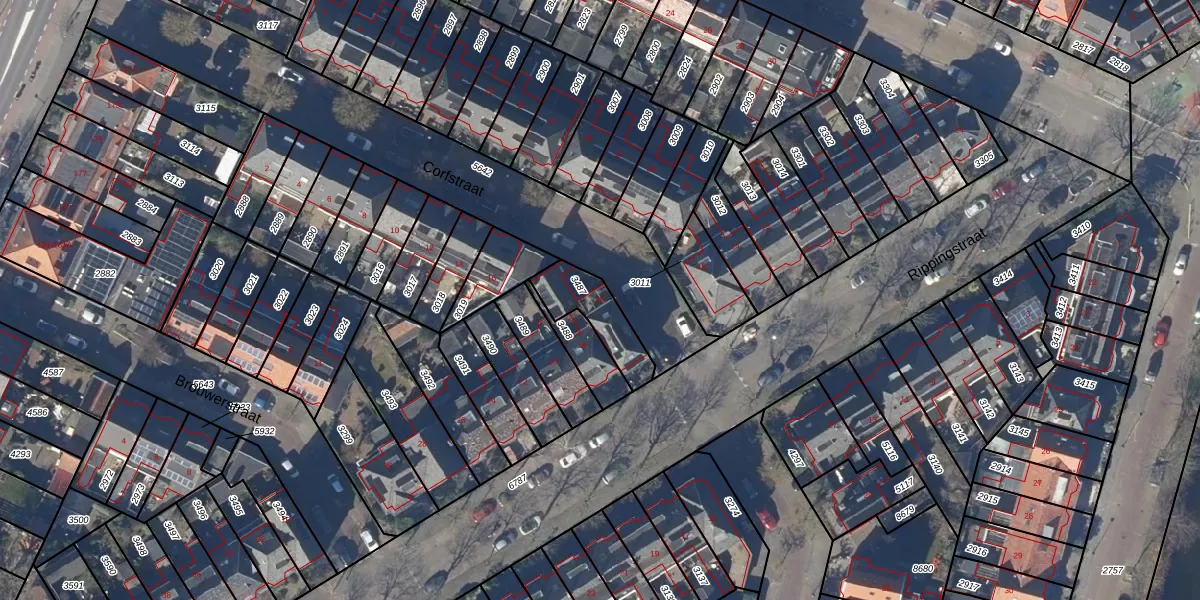 Het perceel waarop Corfstraat 18 staat heeft een oppervlakte van 163 m². Dit is een middelgroot perceel. De perceeloppervlakte wordt geregistreerd door het Kadaster. Gedetailleerde informatie over de maten van dit perceel kunt u vinden in het rapport Kadastrale kaart met maatvoering van Corfstraat 18.