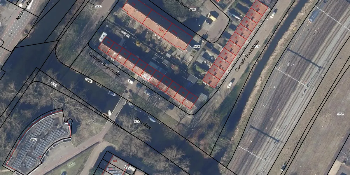 Het perceel waarop Cornelis Buysstraat 48 staat heeft een oppervlakte van 6420 m². Dit is een zeer groot perceel. De perceeloppervlakte wordt geregistreerd door het Kadaster. Gedetailleerde informatie over de maten van dit perceel kunt u vinden in het rapport Kadastrale kaart met maatvoering van Cornelis Buysstraat 48.