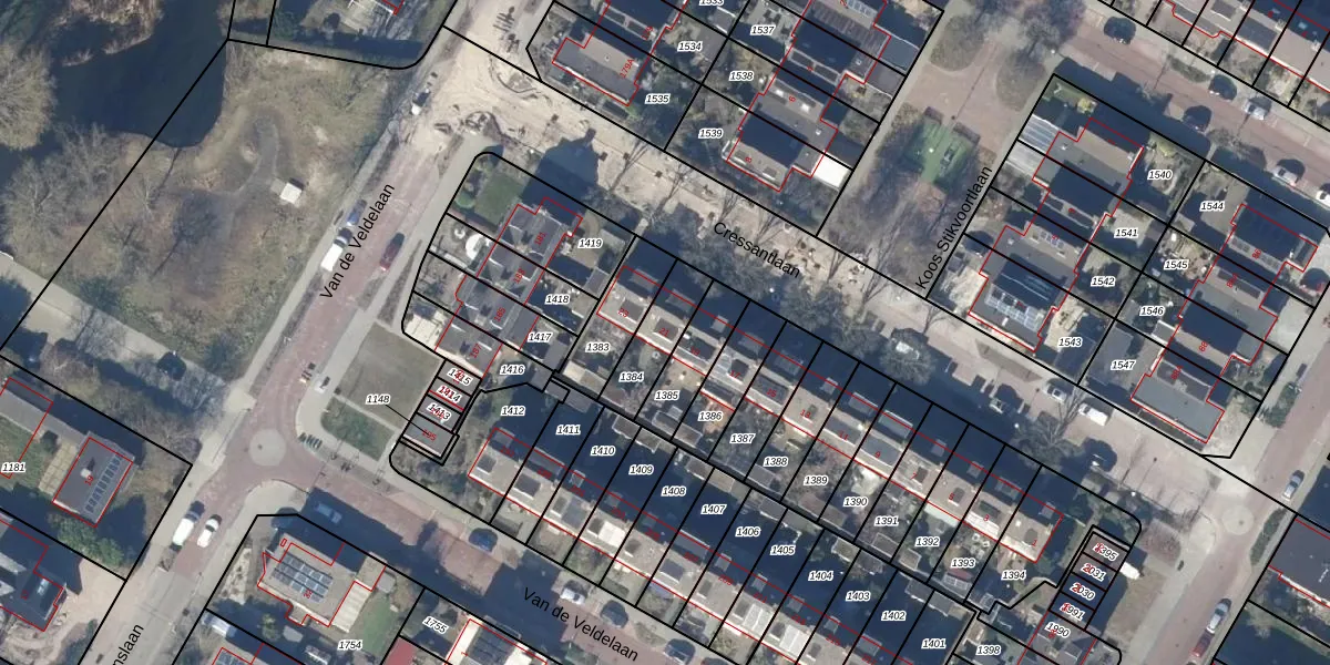Gebruik de zoekbalk of klik op een perceel voor informatie over de adressen binnen dit perceel.