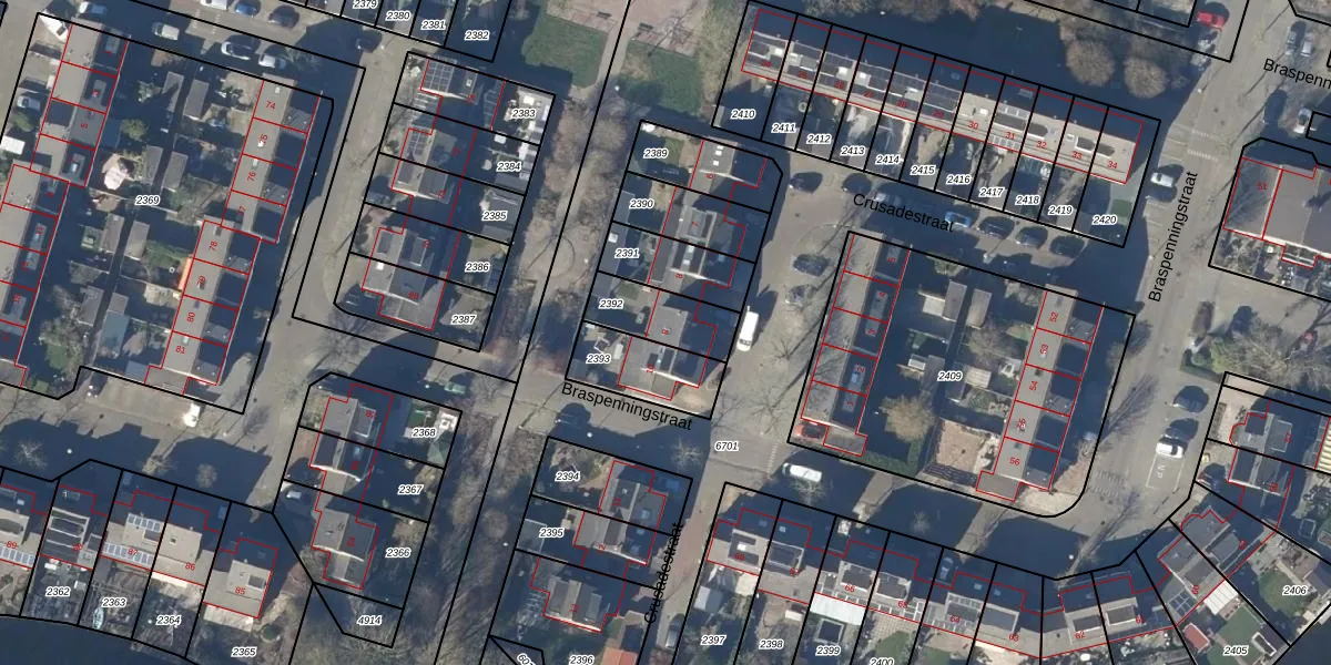 Het perceel waarop Crusadestraat 9 staat heeft een oppervlakte van 176 m². Dit is een middelgroot perceel. De perceeloppervlakte wordt geregistreerd door het Kadaster. Gedetailleerde informatie over de maten van dit perceel kunt u vinden in het rapport Kadastrale kaart met maatvoering van Crusadestraat 9.