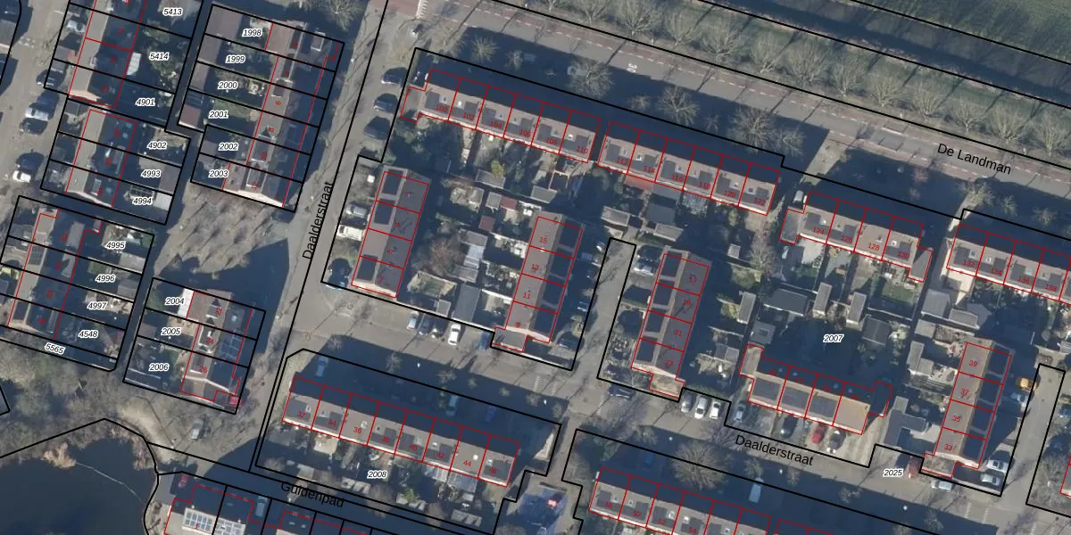 Het perceel waarop Daalderstraat 13 staat heeft een oppervlakte van 8595 m². Dit is een zeer groot perceel. De perceeloppervlakte wordt geregistreerd door het Kadaster. Gedetailleerde informatie over de maten van dit perceel kunt u vinden in het rapport Kadastrale kaart met maatvoering van Daalderstraat 13.