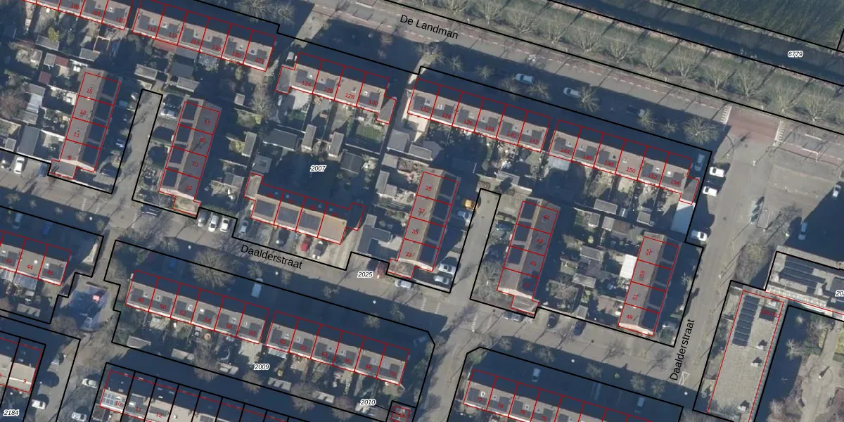 Het perceel waarop Daalderstraat 37 staat heeft een oppervlakte van 8595 m². Dit is een zeer groot perceel. De perceeloppervlakte wordt geregistreerd door het Kadaster. Gedetailleerde informatie over de maten van dit perceel kunt u vinden in het rapport Kadastrale kaart met maatvoering van Daalderstraat 37.