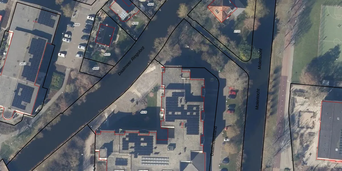 Het perceel waarop Daalmeereiland 116 staat heeft een oppervlakte van 4281 m². Dit is een zeer groot perceel. De perceeloppervlakte wordt geregistreerd door het Kadaster. Gedetailleerde informatie over de maten van dit perceel kunt u vinden in het rapport Kadastrale kaart met maatvoering van Daalmeereiland 116.