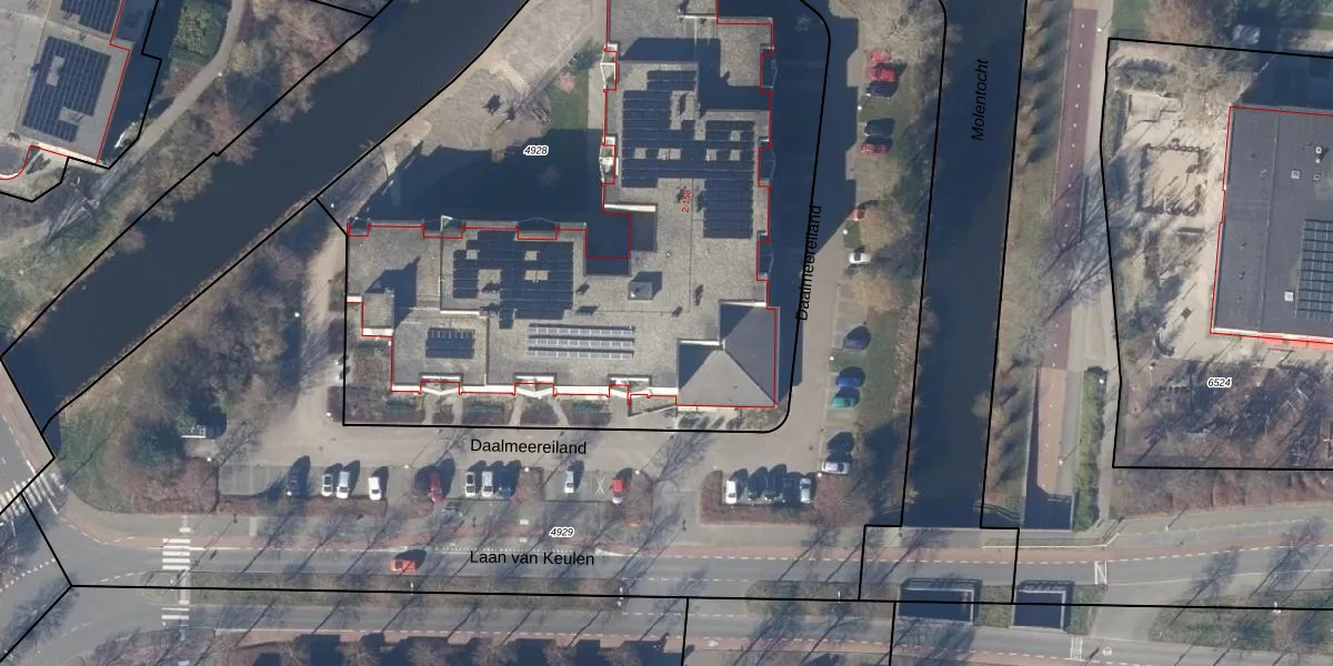 Het perceel waarop Daalmeereiland 132 staat heeft een oppervlakte van 4281 m². Dit is een zeer groot perceel. De perceeloppervlakte wordt geregistreerd door het Kadaster. Gedetailleerde informatie over de maten van dit perceel kunt u vinden in het rapport Kadastrale kaart met maatvoering van Daalmeereiland 132.