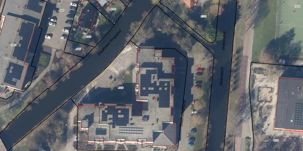 Het perceel waarop Daalmeereiland 26 staat heeft een oppervlakte van 4281 m². Dit is een zeer groot perceel. De perceeloppervlakte wordt geregistreerd door het Kadaster. Gedetailleerde informatie over de maten van dit perceel kunt u vinden in het rapport Kadastrale kaart met maatvoering van Daalmeereiland 26.