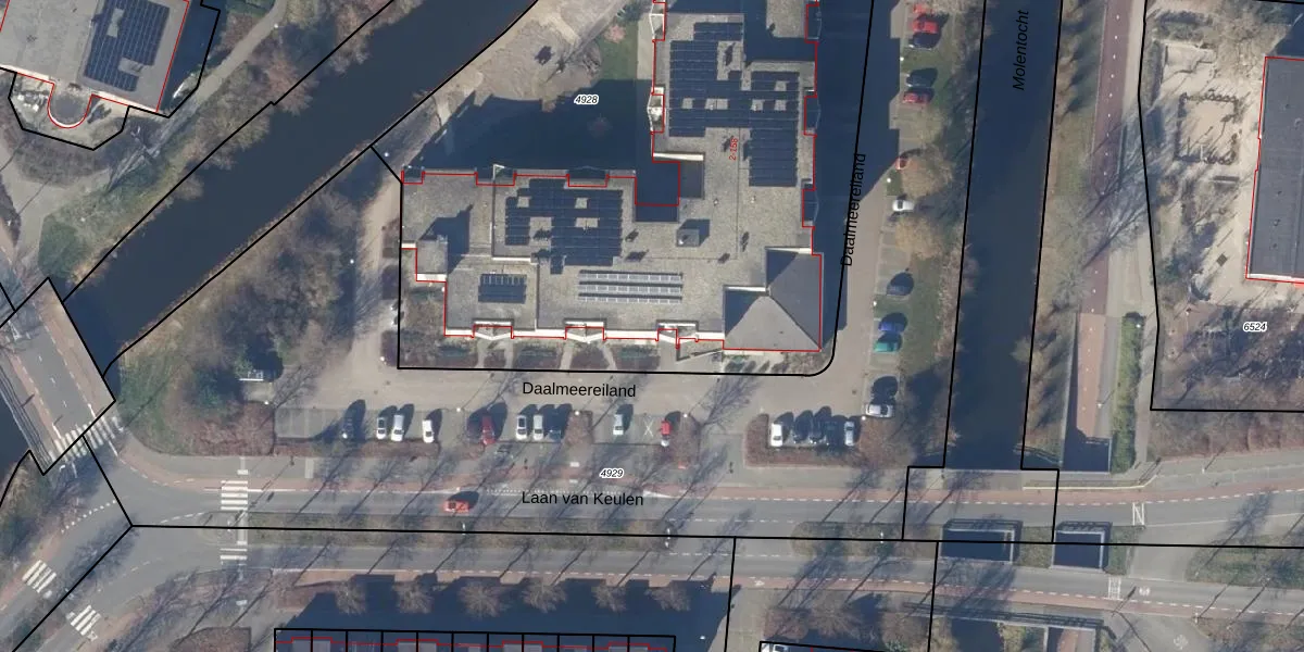 Het perceel waarop Daalmeereiland 4 staat heeft een oppervlakte van 4281 m². Dit is een zeer groot perceel. De perceeloppervlakte wordt geregistreerd door het Kadaster. Gedetailleerde informatie over de maten van dit perceel kunt u vinden in het rapport Kadastrale kaart met maatvoering van Daalmeereiland 4.