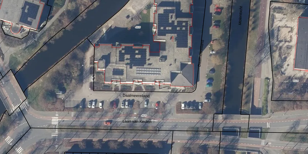 Het perceel waarop Daalmeereiland 46 staat heeft een oppervlakte van 4281 m². Dit is een zeer groot perceel. De perceeloppervlakte wordt geregistreerd door het Kadaster. Gedetailleerde informatie over de maten van dit perceel kunt u vinden in het rapport Kadastrale kaart met maatvoering van Daalmeereiland 46.
