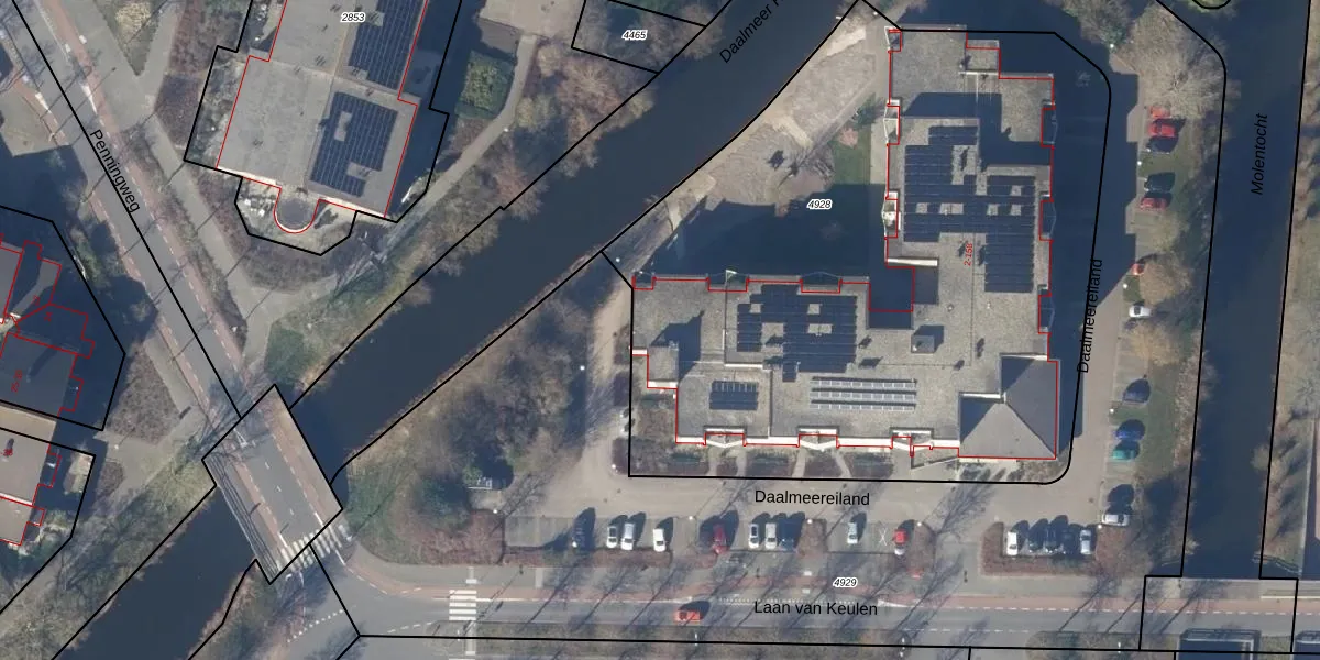 Het perceel waarop Daalmeereiland 56 staat heeft een oppervlakte van 4281 m². Dit is een zeer groot perceel. De perceeloppervlakte wordt geregistreerd door het Kadaster. Gedetailleerde informatie over de maten van dit perceel kunt u vinden in het rapport Kadastrale kaart met maatvoering van Daalmeereiland 56.