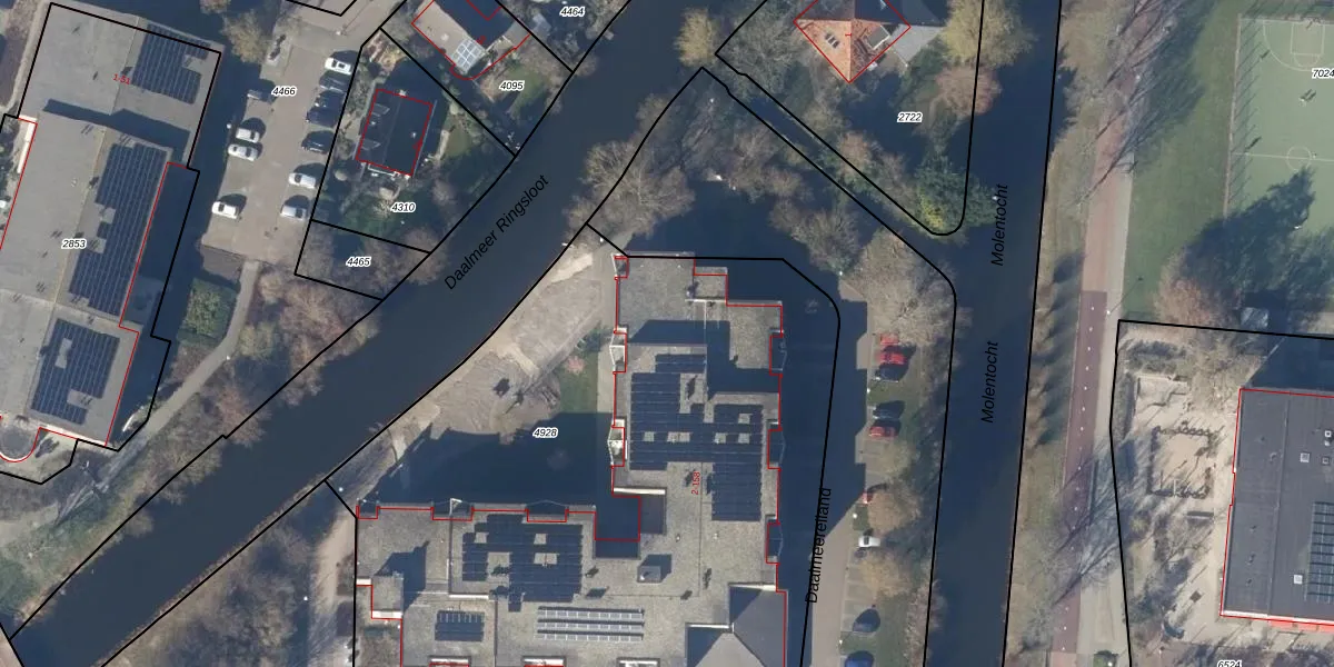 Het perceel waarop Daalmeereiland 72 staat heeft een oppervlakte van 4281 m². Dit is een zeer groot perceel. De perceeloppervlakte wordt geregistreerd door het Kadaster. Gedetailleerde informatie over de maten van dit perceel kunt u vinden in het rapport Kadastrale kaart met maatvoering van Daalmeereiland 72.