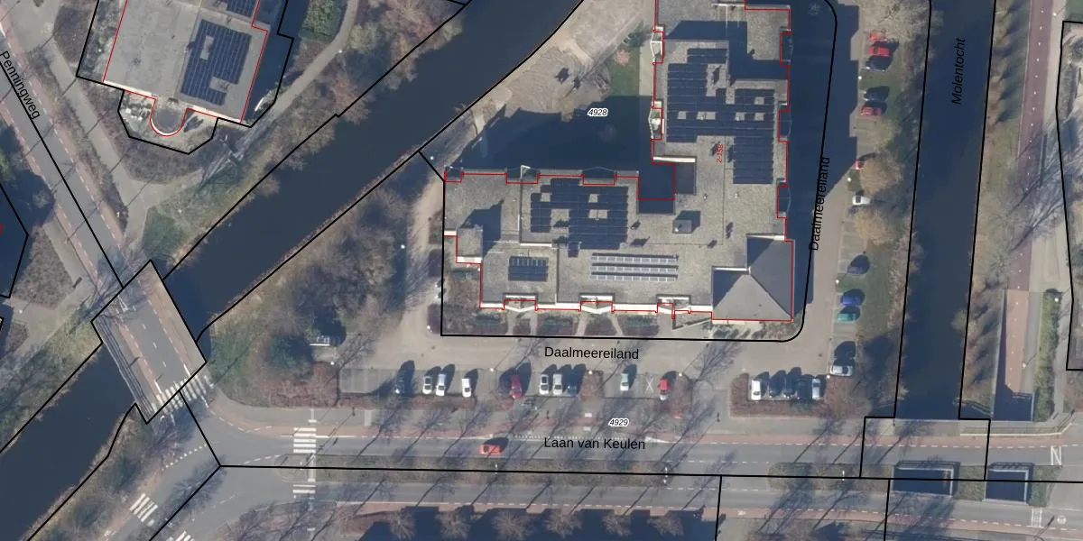 Het perceel waarop Daalmeereiland 96 staat heeft een oppervlakte van 4281 m². Dit is een zeer groot perceel. De perceeloppervlakte wordt geregistreerd door het Kadaster. Gedetailleerde informatie over de maten van dit perceel kunt u vinden in het rapport Kadastrale kaart met maatvoering van Daalmeereiland 96.