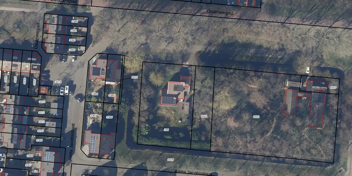 Gebruik de zoekbalk of klik op een perceel voor informatie over de adressen binnen dit perceel.