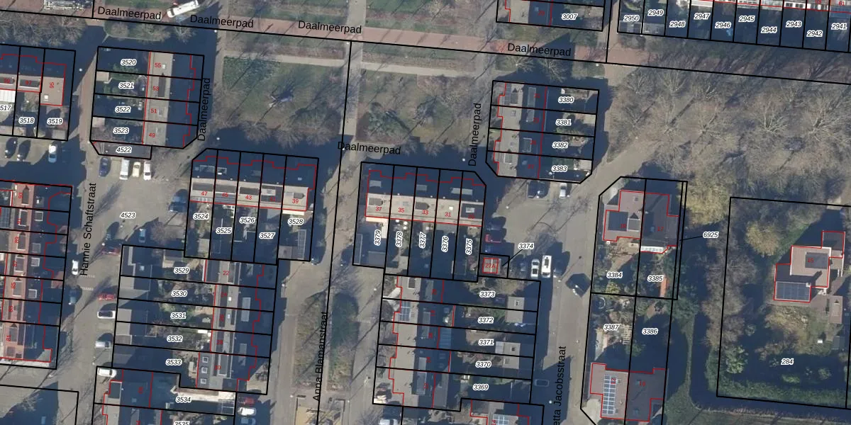 Gebruik de zoekbalk of klik op een perceel voor informatie over de adressen binnen dit perceel.