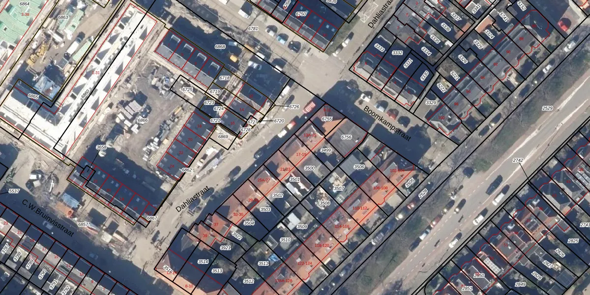 Het perceel waarop Dahliastraat 19 staat heeft een oppervlakte van 133 m². Dit is een middelgroot perceel. De perceeloppervlakte wordt geregistreerd door het Kadaster. Gedetailleerde informatie over de maten van dit perceel kunt u vinden in het rapport Kadastrale kaart met maatvoering van Dahliastraat 19.