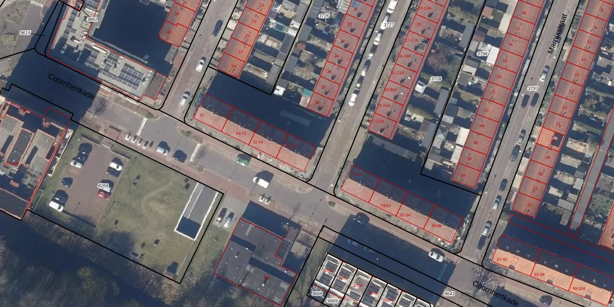 Het perceel waarop Dathenusstraat 32 staat heeft een oppervlakte van 2770 m². Dit is een zeer groot perceel. De perceeloppervlakte wordt geregistreerd door het Kadaster. Gedetailleerde informatie over de maten van dit perceel kunt u vinden in het rapport Kadastrale kaart met maatvoering van Dathenusstraat 32.