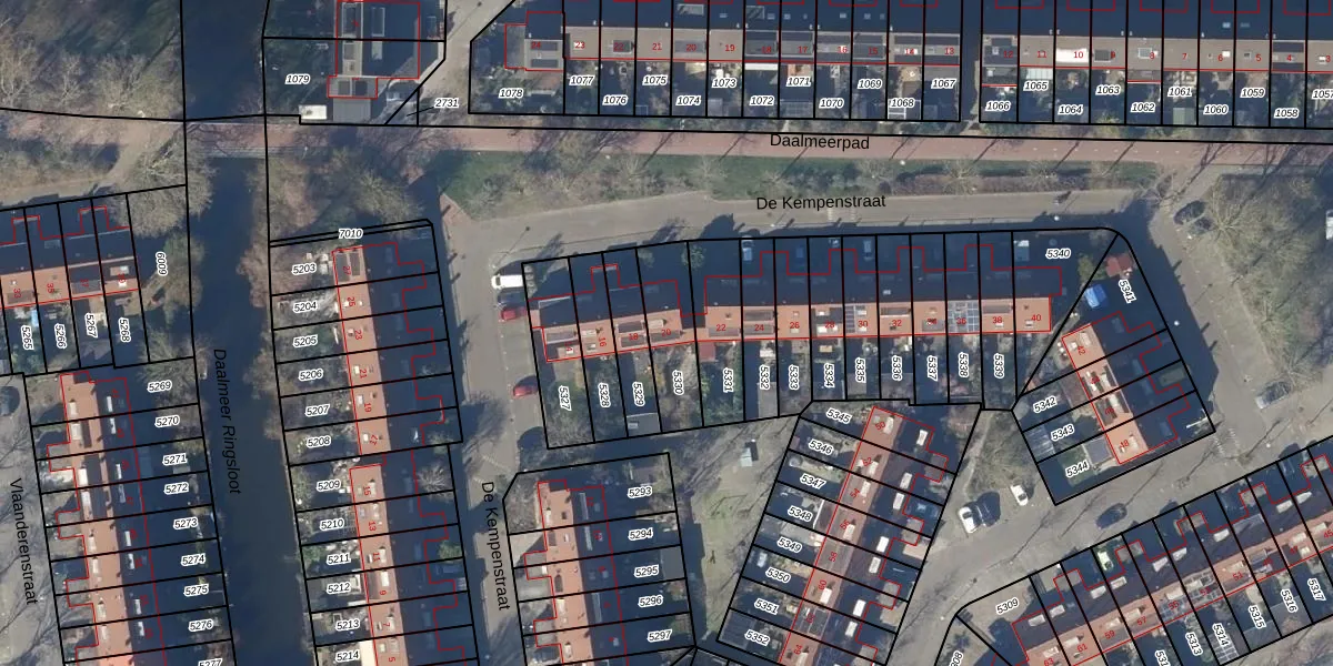 Gebruik de zoekbalk of klik op een perceel voor informatie over de adressen binnen dit perceel.
