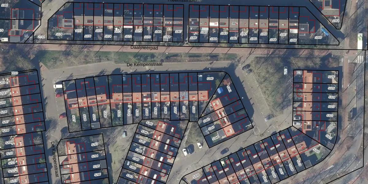 Gebruik de zoekbalk of klik op een perceel voor informatie over de adressen binnen dit perceel.