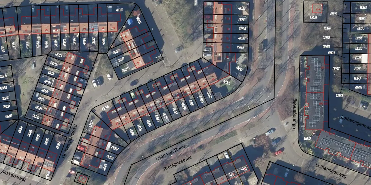 Gebruik de zoekbalk of klik op een perceel voor informatie over de adressen binnen dit perceel.