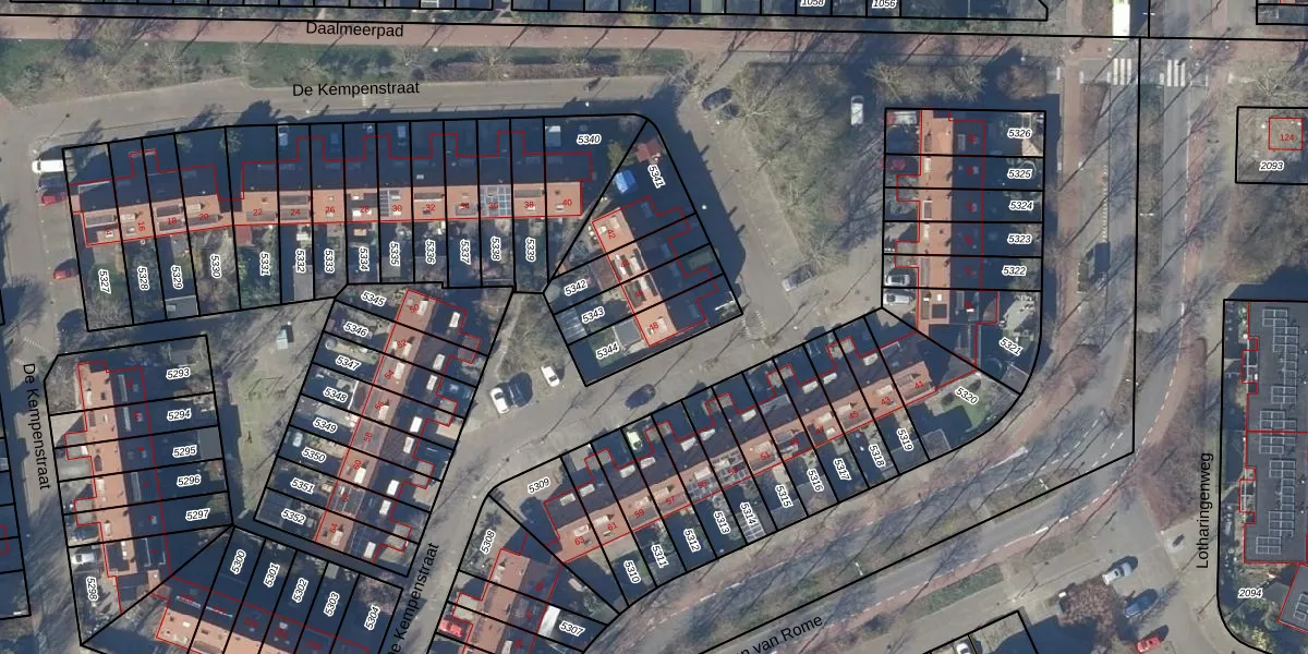 Gebruik de zoekbalk of klik op een perceel voor informatie over de adressen binnen dit perceel.