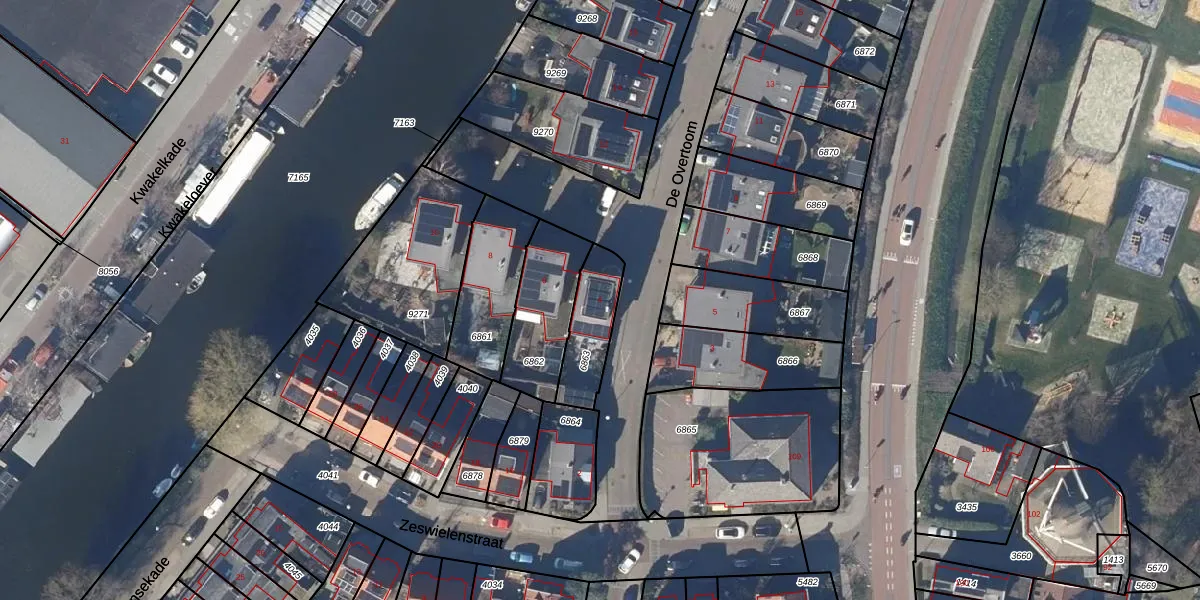 Gebruik de zoekbalk of klik op een perceel voor informatie over de adressen binnen dit perceel.