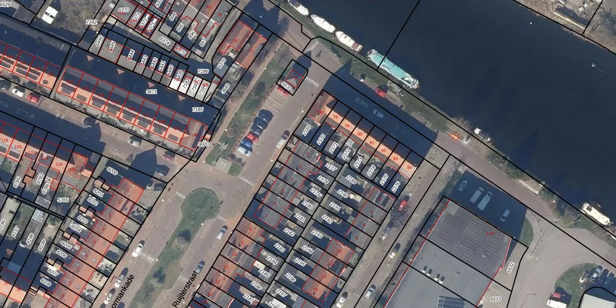 Het perceel waarop De Ruijterstraat 2 staat heeft een oppervlakte van 95 m². Dit is een klein perceel. De perceeloppervlakte wordt geregistreerd door het Kadaster. Gedetailleerde informatie over de maten van dit perceel kunt u vinden in het rapport Kadastrale kaart met maatvoering van De Ruijterstraat 2.