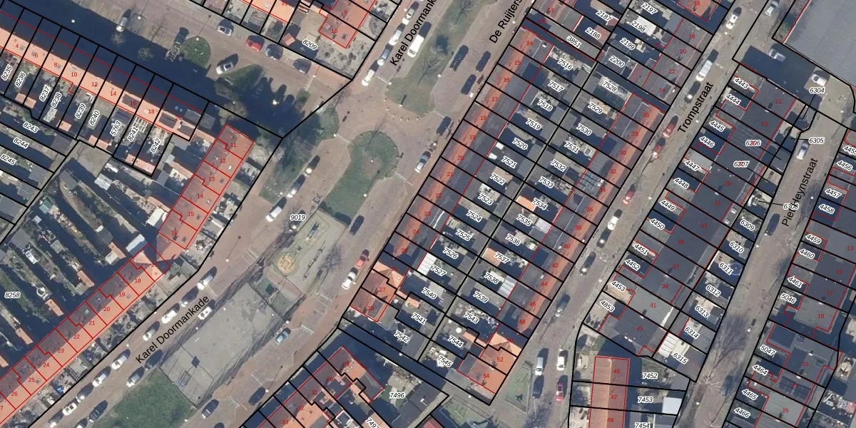 Het perceel waarop De Ruijterstraat 23 staat heeft een oppervlakte van 102 m². Dit is een middelgroot perceel. De perceeloppervlakte wordt geregistreerd door het Kadaster. Gedetailleerde informatie over de maten van dit perceel kunt u vinden in het rapport Kadastrale kaart met maatvoering van De Ruijterstraat 23.
