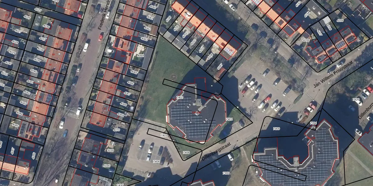 Het perceel waarop Dillenburgstraat 150 staat heeft een oppervlakte van 1580 m². Dit is een zeer groot perceel. De perceeloppervlakte wordt geregistreerd door het Kadaster. Gedetailleerde informatie over de maten van dit perceel kunt u vinden in het rapport Kadastrale kaart met maatvoering van Dillenburgstraat 150.