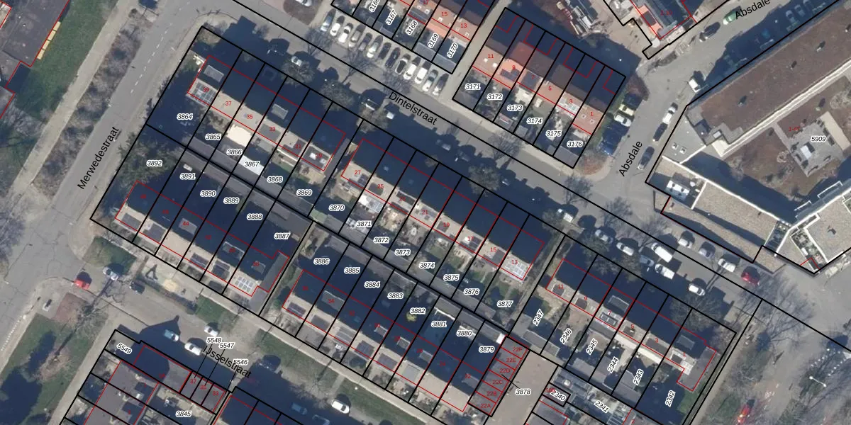 Dintelstraat 21 is gelegen op kadastraal perceel ODP02A3873. Deze kadastrale aanduiding is uniek en wordt gebruikt door het Kadaster om eigendomsrechten en andere zakelijke rechten vast te leggen. Het perceel maakt onderdeel uit van de kadastrale gemeente Oudorp.