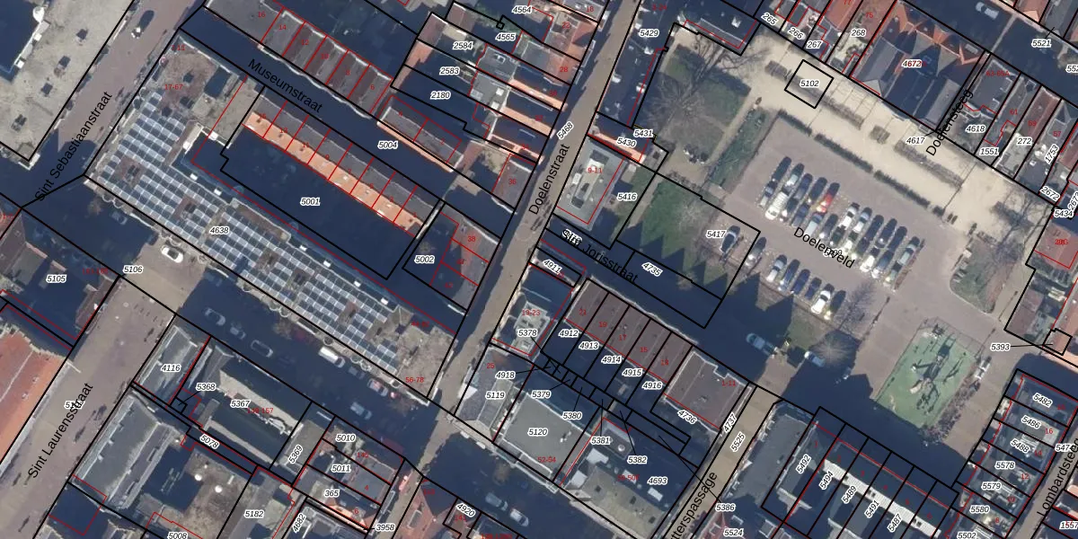 Het perceel waarop Doelenstraat 19 staat heeft een oppervlakte van 4108 m². Dit is een zeer groot perceel. De perceeloppervlakte wordt geregistreerd door het Kadaster. Gedetailleerde informatie over de maten van dit perceel kunt u vinden in het rapport Kadastrale kaart met maatvoering van Doelenstraat 19.