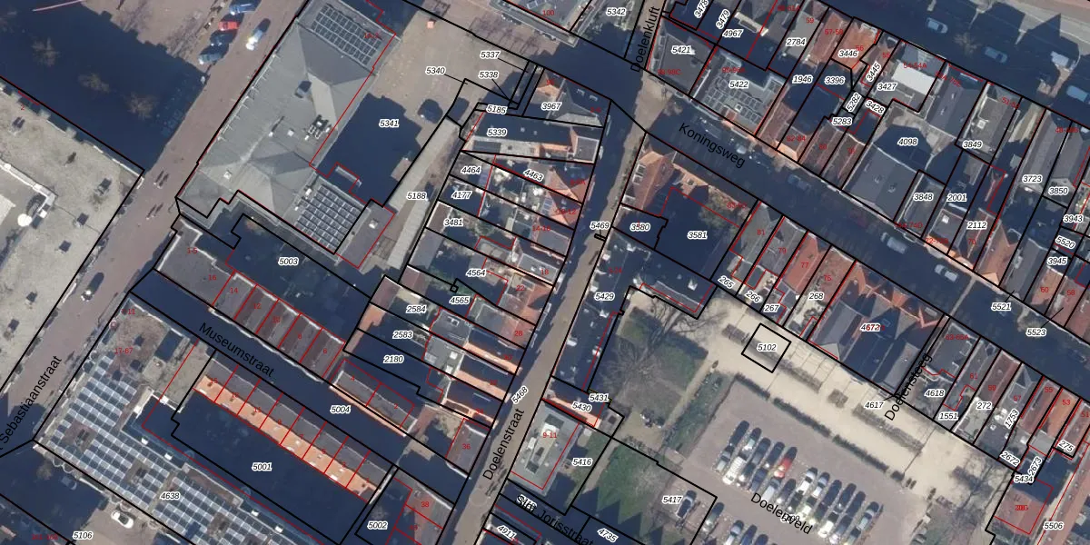 Het perceel waarop Doelenstraat 20 staat heeft een oppervlakte van 149 m². Dit is een middelgroot perceel. De perceeloppervlakte wordt geregistreerd door het Kadaster. Gedetailleerde informatie over de maten van dit perceel kunt u vinden in het rapport Kadastrale kaart met maatvoering van Doelenstraat 20.