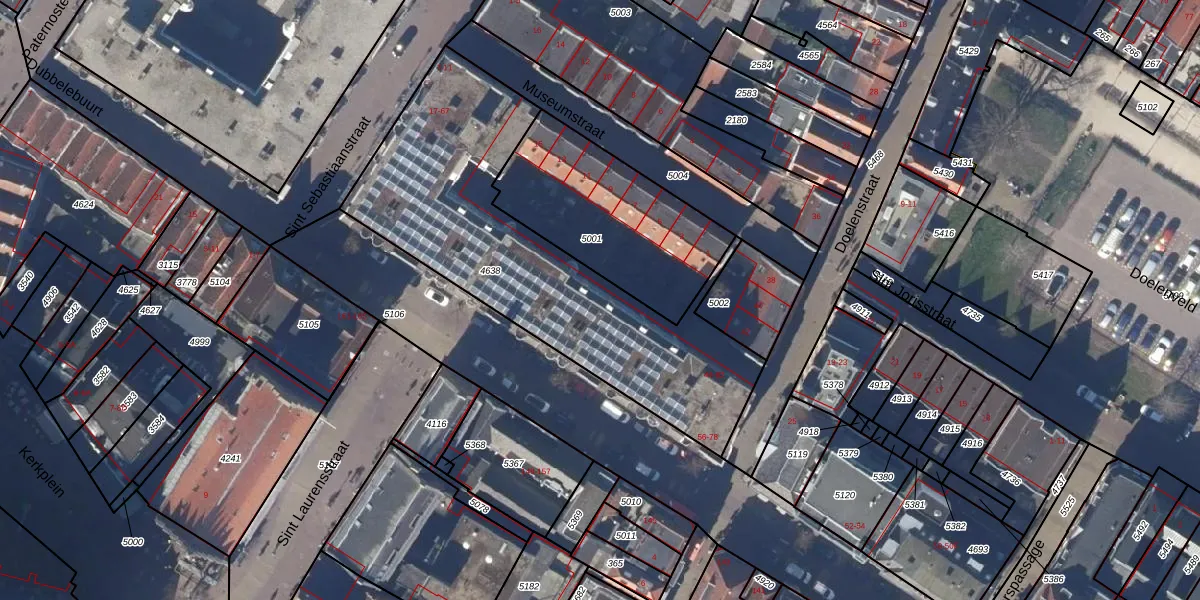 Het perceel waarop Doelenstraat 54 staat heeft een oppervlakte van 1488 m². Dit is een zeer groot perceel. De perceeloppervlakte wordt geregistreerd door het Kadaster. Gedetailleerde informatie over de maten van dit perceel kunt u vinden in het rapport Kadastrale kaart met maatvoering van Doelenstraat 54.