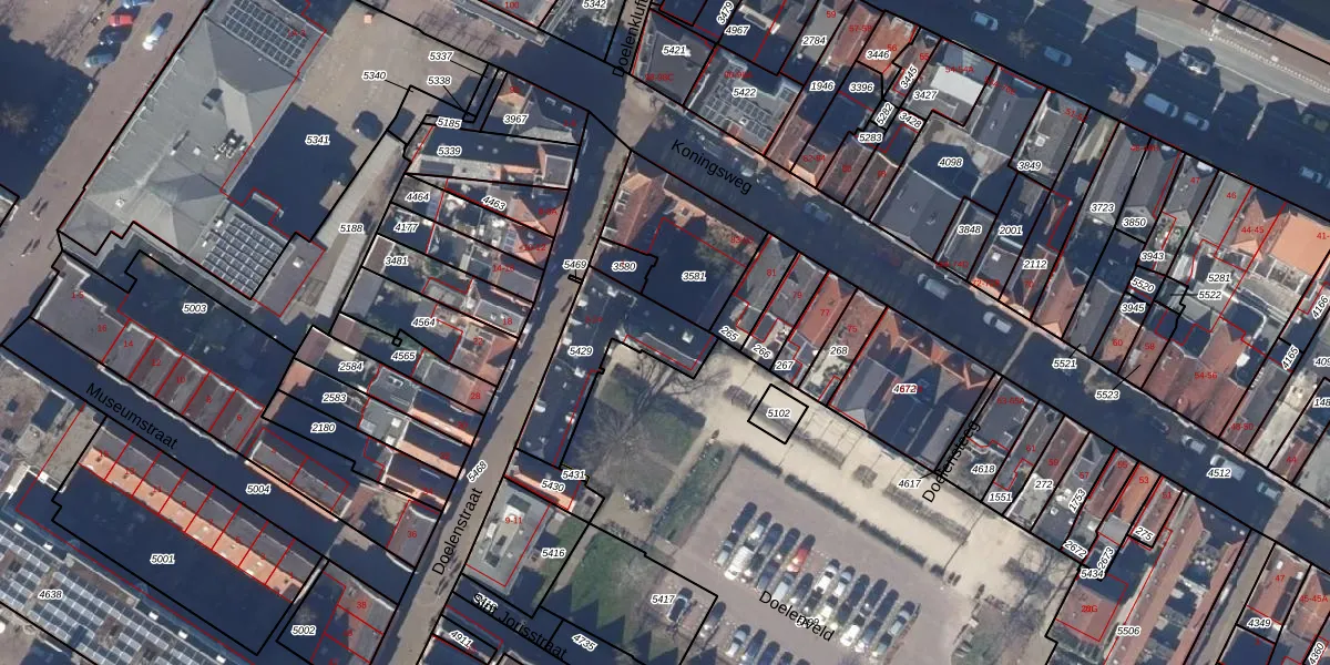 Het perceel waarop Doelenveld 23 staat heeft een oppervlakte van 321 m². Dit is een groot perceel. De perceeloppervlakte wordt geregistreerd door het Kadaster. Gedetailleerde informatie over de maten van dit perceel kunt u vinden in het rapport Kadastrale kaart met maatvoering van Doelenveld 23.