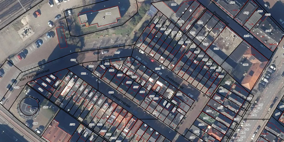 Het perceel waarop Drebbelstraat 17 staat heeft een oppervlakte van 64 m². Dit is een klein perceel. De perceeloppervlakte wordt geregistreerd door het Kadaster. Gedetailleerde informatie over de maten van dit perceel kunt u vinden in het rapport Kadastrale kaart met maatvoering van Drebbelstraat 17.