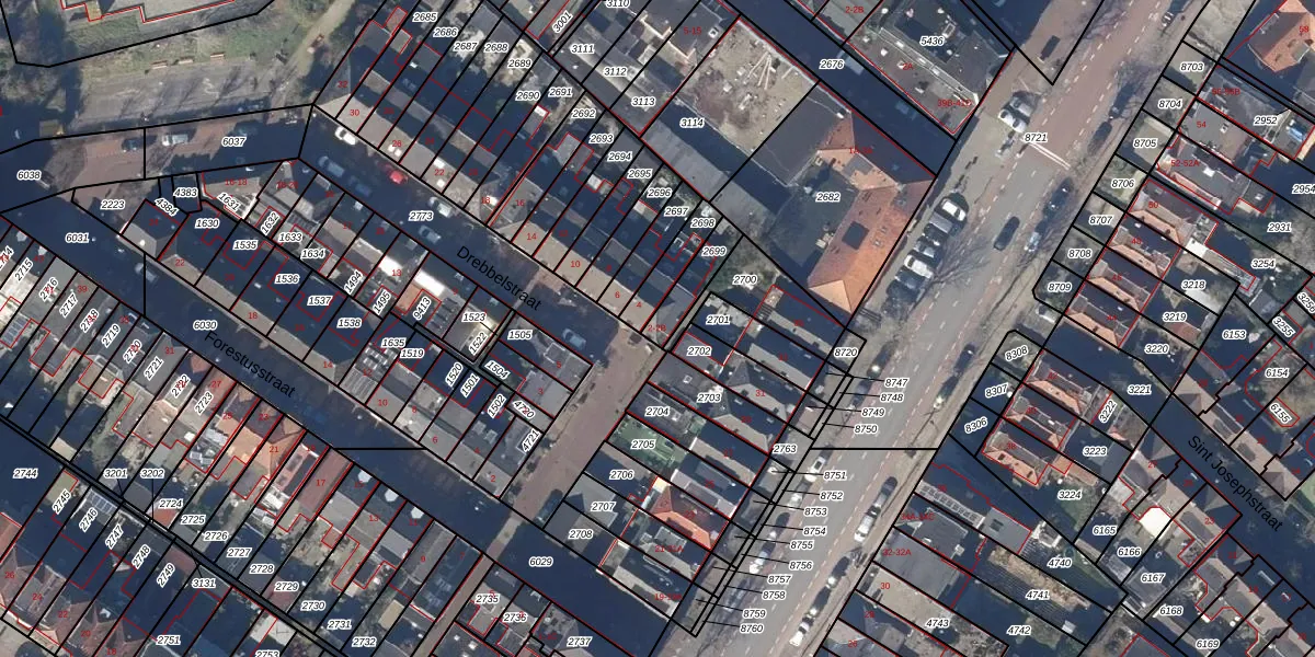 Het perceel waarop Drebbelstraat 2 staat heeft een oppervlakte van 86 m². Dit is een klein perceel. De perceeloppervlakte wordt geregistreerd door het Kadaster. Gedetailleerde informatie over de maten van dit perceel kunt u vinden in het rapport Kadastrale kaart met maatvoering van Drebbelstraat 2.