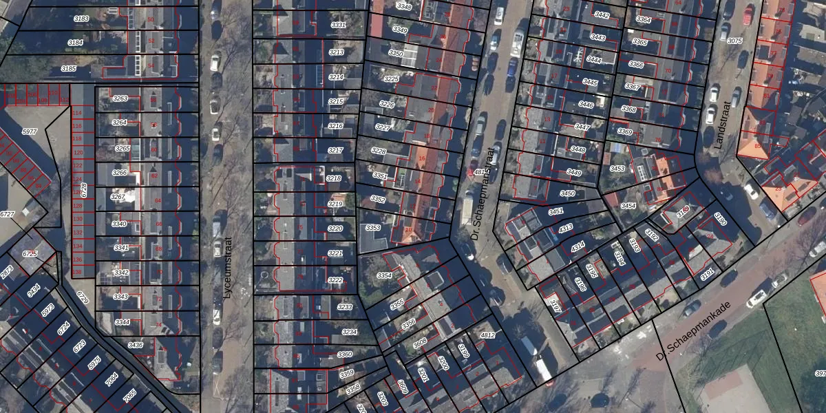 Gebruik de zoekbalk of klik op een perceel voor informatie over de adressen binnen dit perceel.