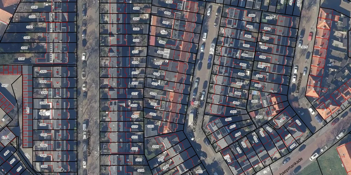 Gebruik de zoekbalk of klik op een perceel voor informatie over de adressen binnen dit perceel.
