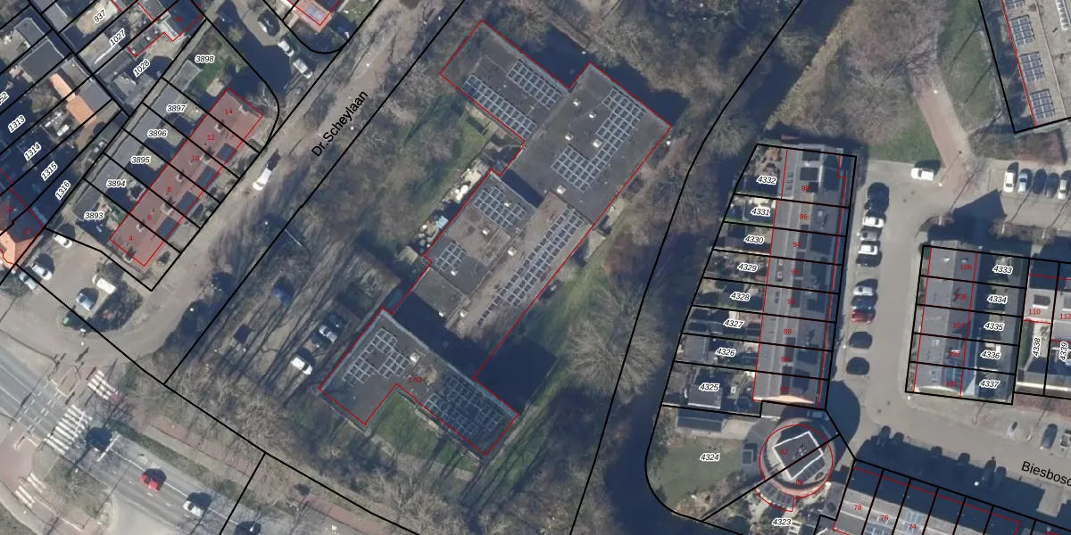 Het perceel waarop Dr.Scheylaan 11 staat heeft een oppervlakte van 9720 m². Dit is een zeer groot perceel. De perceeloppervlakte wordt geregistreerd door het Kadaster. Gedetailleerde informatie over de maten van dit perceel kunt u vinden in het rapport Kadastrale kaart met maatvoering van Dr.Scheylaan 11.