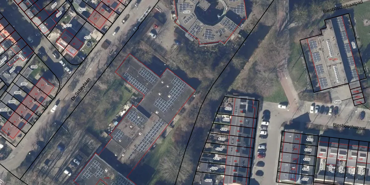 Het perceel waarop Dr.Scheylaan 19 staat heeft een oppervlakte van 9720 m². Dit is een zeer groot perceel. De perceeloppervlakte wordt geregistreerd door het Kadaster. Gedetailleerde informatie over de maten van dit perceel kunt u vinden in het rapport Kadastrale kaart met maatvoering van Dr.Scheylaan 19.