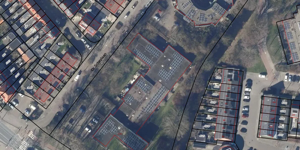 Het perceel waarop Dr.Scheylaan 35 staat heeft een oppervlakte van 9720 m². Dit is een zeer groot perceel. De perceeloppervlakte wordt geregistreerd door het Kadaster. Gedetailleerde informatie over de maten van dit perceel kunt u vinden in het rapport Kadastrale kaart met maatvoering van Dr.Scheylaan 35.