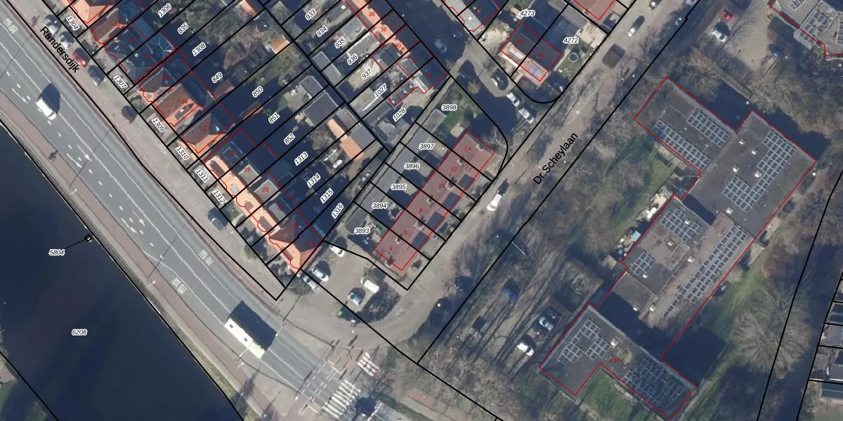 Gebruik de zoekbalk of klik op een perceel voor informatie over de adressen binnen dit perceel.